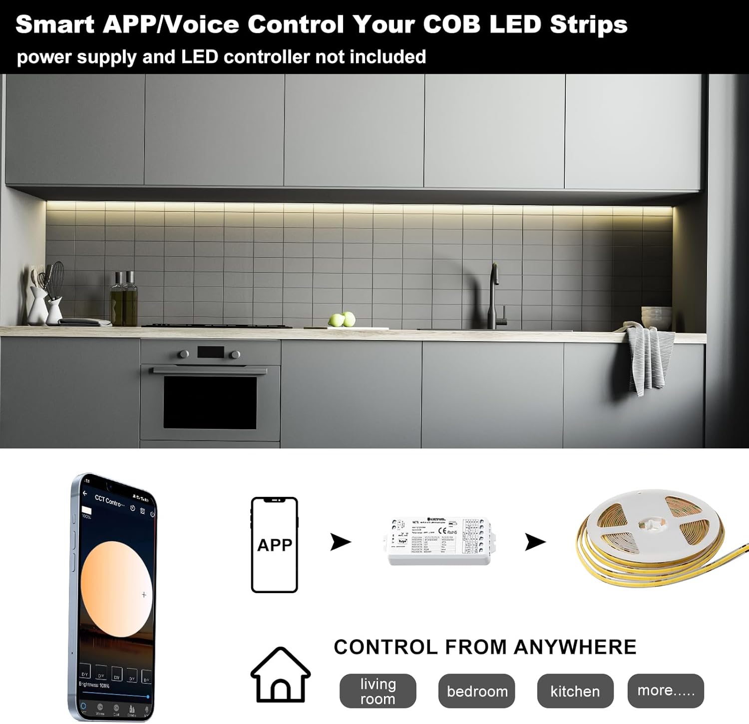 【4000K Daylight cob led light strip】24v cob led strip 4000K light is natural and comfortable, adding relaxing cob led strip atmosphere light to the living room/kitchen/bedroom