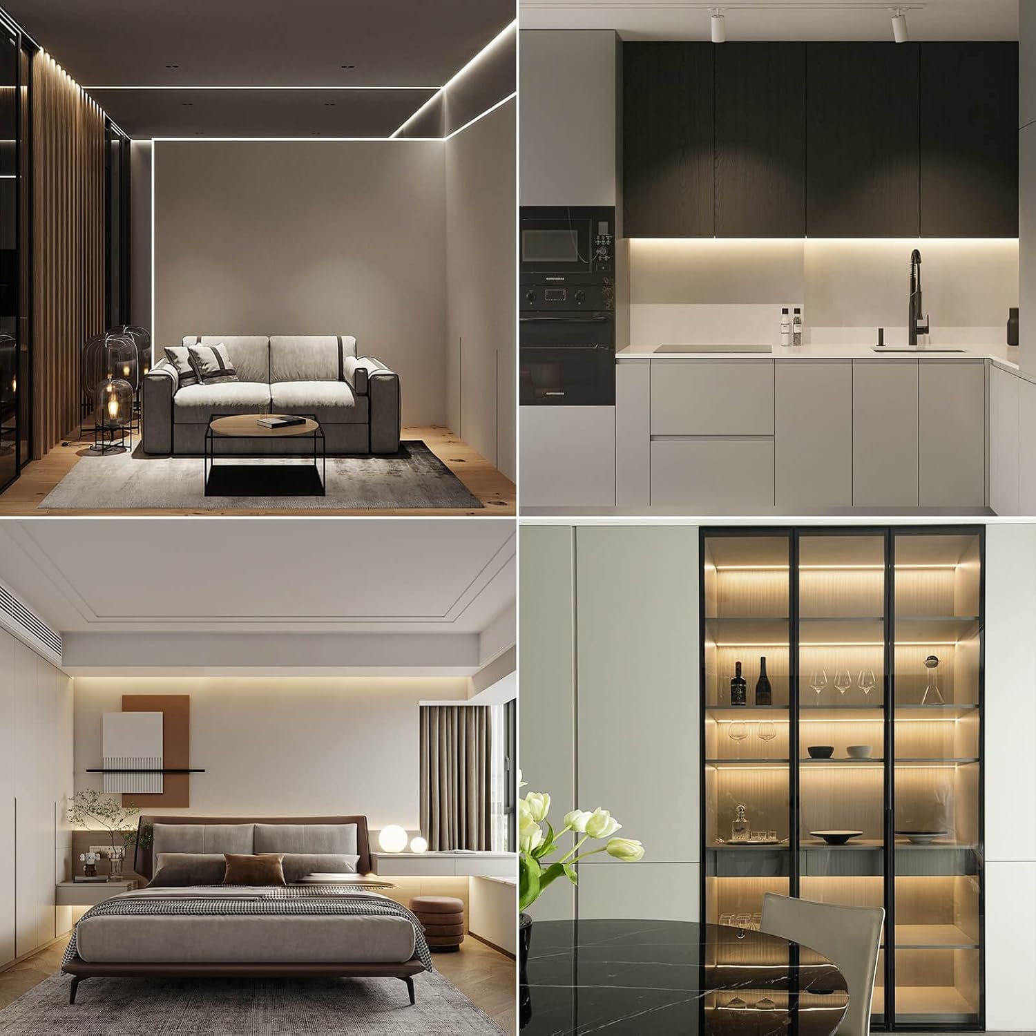 【24v Ultra bright low voltage led strip lights】The working power of this COB light strip is 9.6w/m, low voltage and low energy consumption, but super bright white led strip cob, no light spots, dark corners. High brightness can meet the ambient lighting needs of kitchens, bars, exhibition halls and other indoor environments
