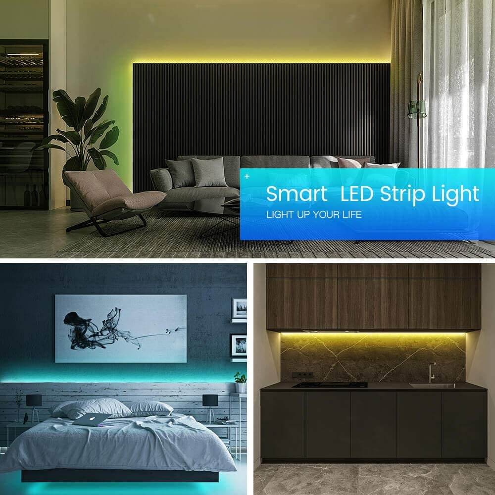 🟢Make your lighting design perfect: When your light strip is interrupted by a cabinet/shelf/corner, you can easily to extend the LED strip to the ideal installation position.