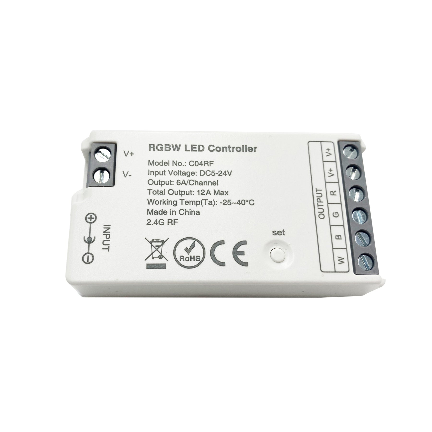• 【4 in 1 RGBW LED Controller】This 4 channel RGBW controller is suitable for FCOB COB LED strip light, 5050SMD RGB RGBWW RGBCW LED light strip, compatible with LED light strip DC5V DC12V DC24V