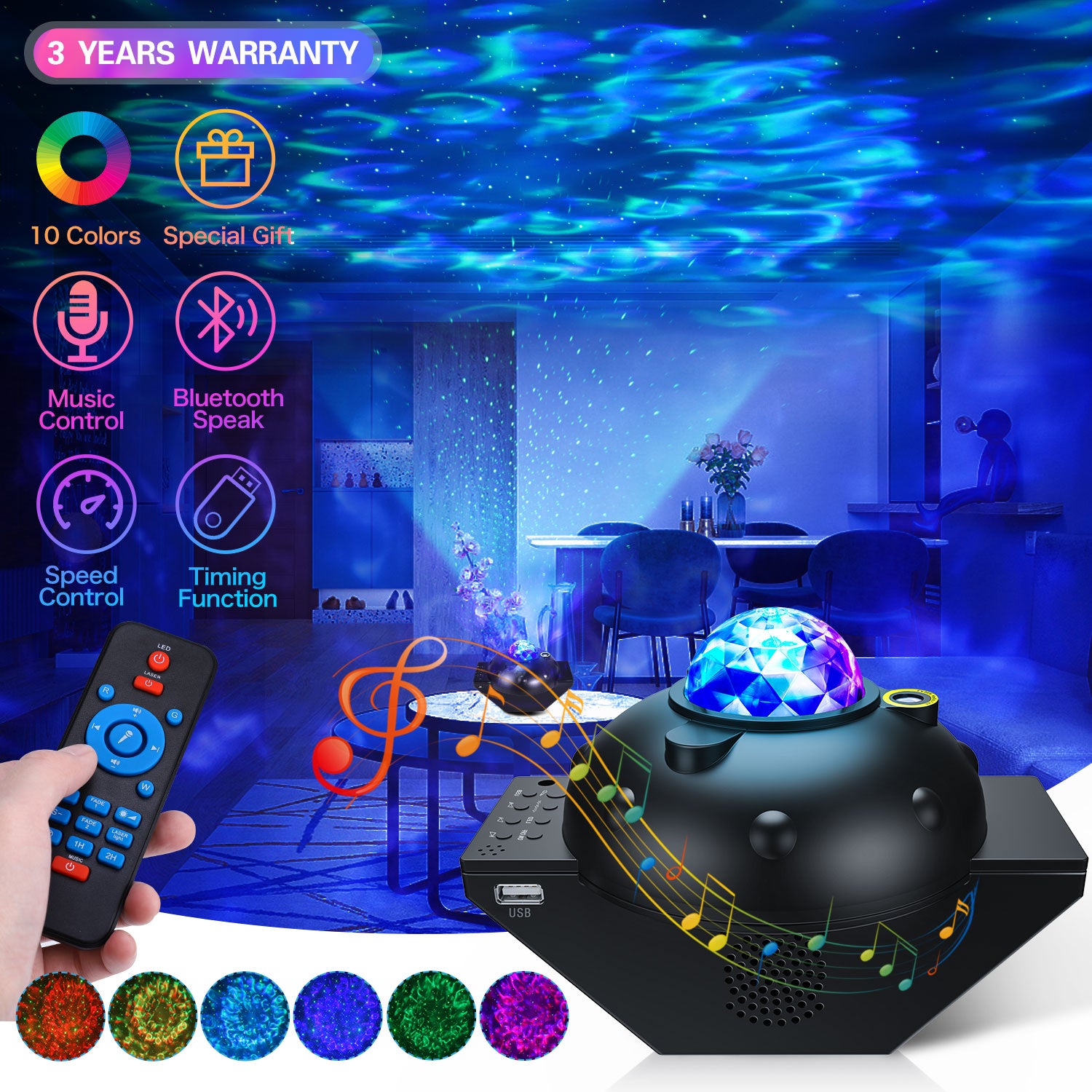 Star Projector Galaxy Projector with Bluetooth Music Speaker,Time Setting,3 in 1 Ocean Wave/Galaxy/Star Night Light Projector for Bedroom,Home Theater,Party,LED light fixtures
