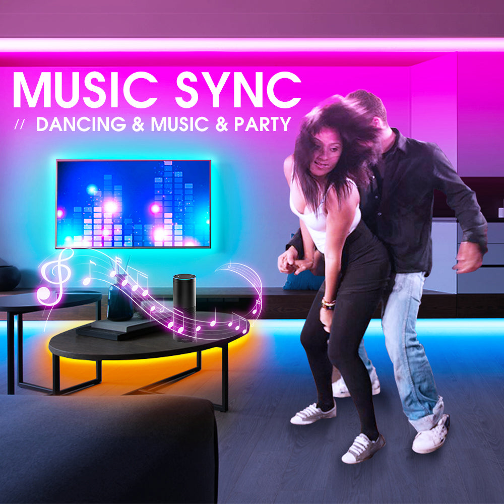 • Music Sync: The strip light syncs to the ambient sound, bringing you an immersive visual-audio experience, give your home a luxurious touch with these Color Changing Lighting.